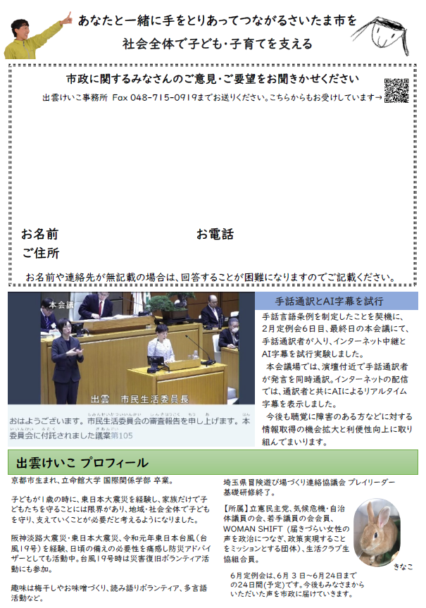 子育て世代の声をさいたま市に届けます Keiko Izumo
